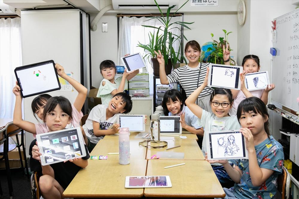 プロイラストレーターのkiyo先生をお招きして、iPadを用いて絵画を描くデジタルアートのレッスンと、イラスト制作にとりくむ教室を行っています。デバイスの力も借りながら、子どもたちの創造力を養い、ICT機器の正しい使いからも学びます。イラスト制作では、自分の表現したいものをかたちにしていく楽しさを体感してもらいます。